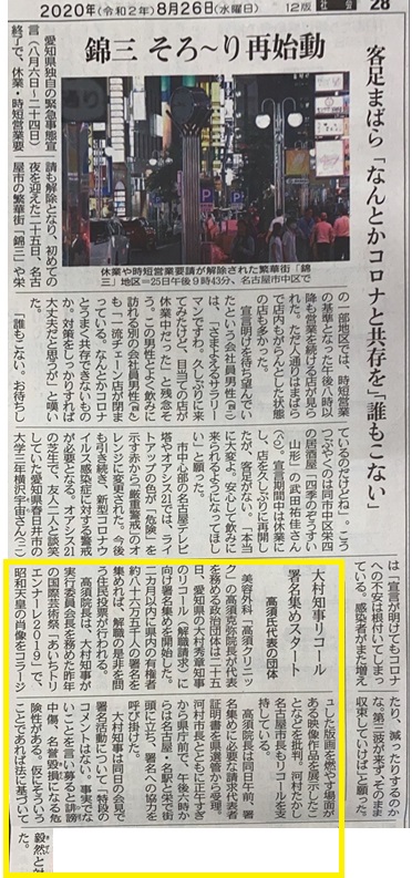 中日新聞は,「大村愛知県知事リコール」運動について,