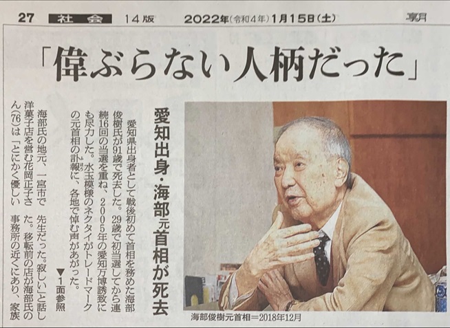 海部さんは,なんかの本で書かれていたが,小沢一郎とともに新進党を立ち上げたのが,やはりマズかったのではないか,と思う。ご冥福を祈ります。