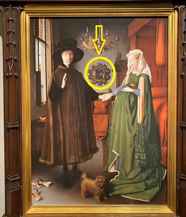 ここには,アルノルフィーニ夫妻の背後と,二人の婚約を公証する画家が描かれているのであるが,・・・