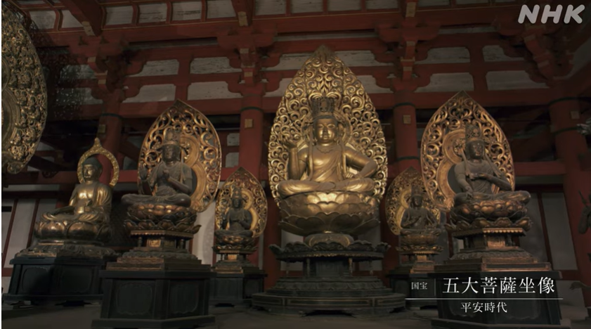 如来部の五柱以外は、全て国宝であるのに対し、何故、如来部の五柱だけが重要文化財にとどまっているのか?というと、どうやら如来部の五柱だけが土一揆(つちいっき)の標的とされて、破壊され、創建時の原型をとどめていない、というのが理由らしい。
