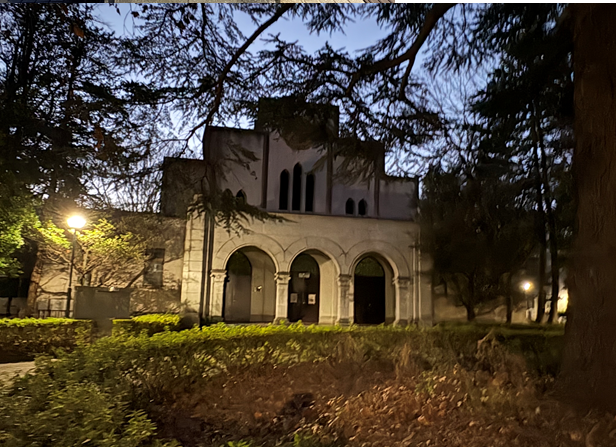 学生の言うとおり、坂道をあがっていき、右手の階段をあがり、その上の建物を回って、左側に曲がった後、通り過ぎた建物と同一の建物にでた。おかしいなぁ、入り口の電気は消えているし、…と思いつつ、建物の中に入って、管理室のような部屋で仕事されていた方に尋ねると、
