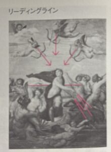 例えば、ラファエロの名画「ガラテアの勝利」(1513年)でいえば、天使の矢が指し示す方向が「リーディングライン」である。