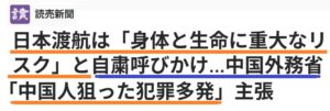 「(中国国内で)日本人狙った犯罪多発」からくるものではないのか?