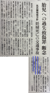 名古屋地検は、「胎児への過失傷害 → 出生時以後に脳障害」の事案で、事件当時胎児だった新生児への過失運転致傷罪の立件を見送った、という。