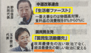 支持層(創価学会信者と団塊のオールドメディア世代)の高齢化・老齢化に伴い、「老老介護」と揶揄される、「旧公明党と旧立憲民主党の野合(政策が真逆)」、あるいは、「かつて統一教会ベッタリだった野田」と、「巨額の裏金疑惑の斉藤」との政治的同性婚に未来などあるはずがない。「生活者ファースト」も「国民生活最優先」も、所詮、云っていることは全く同じで、かつて「民主党」が唱えた「国民が主役」という、空虚なスローガンの焼き直しに過ぎない。これら野党勢力(創価学会・立民・国民民主)は、「創価学会」、「連合」という副作用(毒素?)を含んだ、三種混合ワクチンのようなものだ。