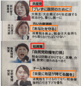 「ブレずに国民のためにならない」共産は、しぶとく生き残るであろうが、「あなたを守れない」れいわ新撰組も、時代錯誤の社民党も、「未来に希望が持てる国にできるとは思えない」「チームみらい」などは、早く成仏してもらいたい。