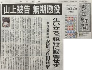 令和4年7月8日、安倍元首相を銃撃・射殺した山上徹也被告人に、令和8年1月21日、無期懲役判決がくだった。第1審判決までの刑事手続に、約3年半の月日を要したことになる。