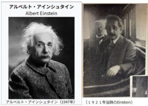 アインシュタイン先生が日本に招聘されたのは、第1次世界大戦後まもない大正10年(1921年)のこと。当時、世界中から引っ張りだこであられたアインシュタイン先生を日本に招聘できたのは、同先生の東洋への興味と、石井純先生からの親書が奏功したもよう。アインシュタイン先生は、同年10月8日にマルセイユ(フランス)出帆の北野丸に搭乗して、同年11月17日に神戸に到着、12月29日、門司(北九州)で榛名丸に乗船して、帰国の途につかれた。この間のことが、石井純先生の上掲・随筆集でも、断片的に紹介されていた。