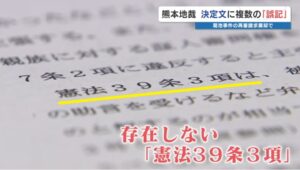 ハンセン病とされた男性が死刑となった「菊池事件」の再審請求を(令和8年1月)28日棄却した熊本地裁(中田幹人裁判長)の決定文で、本来「憲法37条3項」と記載されるべき箇所が、存在していない「憲法39条3項」と表記されるなど複数の誤記があった。地裁総務課は「決定文についてはお答えしておりません」としている。