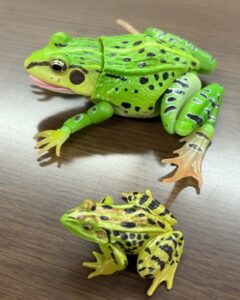 上掲写真で、上が、最近、ガチャポンで当たったトノサマガエル。