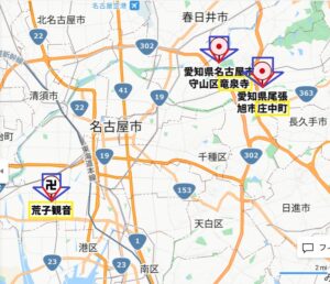 「円空ガイド」の目的で、吉田初三郎の鳥瞰図をもとに作成した上掲パノラマ絵図については、先のブログでも紹介したが、このパノラマ図を作成していた際、龍泉寺(Ⅱ)と庄中観音堂(Ⅱ’)がかなり近接した位置にあることに気付いた。それとともに、この位置関係からすると、ひょっとして、円空は、龍泉寺から荒子観音寺に向かう途上、庄中観音堂に立ち寄ったのではないか? と一瞬、思った。