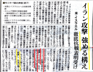 ・米国は、最高指導者ハメネイ師の殺害に成功したが、その後継者として、ハメネイ師の息子・モジタバ師が最高指導者としての地位を確保しており、特に、ハメネイ師をはじめ戦死者は、イスラム教のイラン側にとっては「殉教者」となることから、「ハメネイ師=殉教者」の息子・モジタバ師は、「殉教者の遺族代表」としての地位をも確保したことになる。したがって、イラン側が戦意を喪失することは考えにくい。