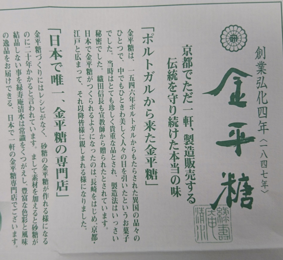 が,「日本では古来より皇室での引出物は金平糖です。」と書かれている。