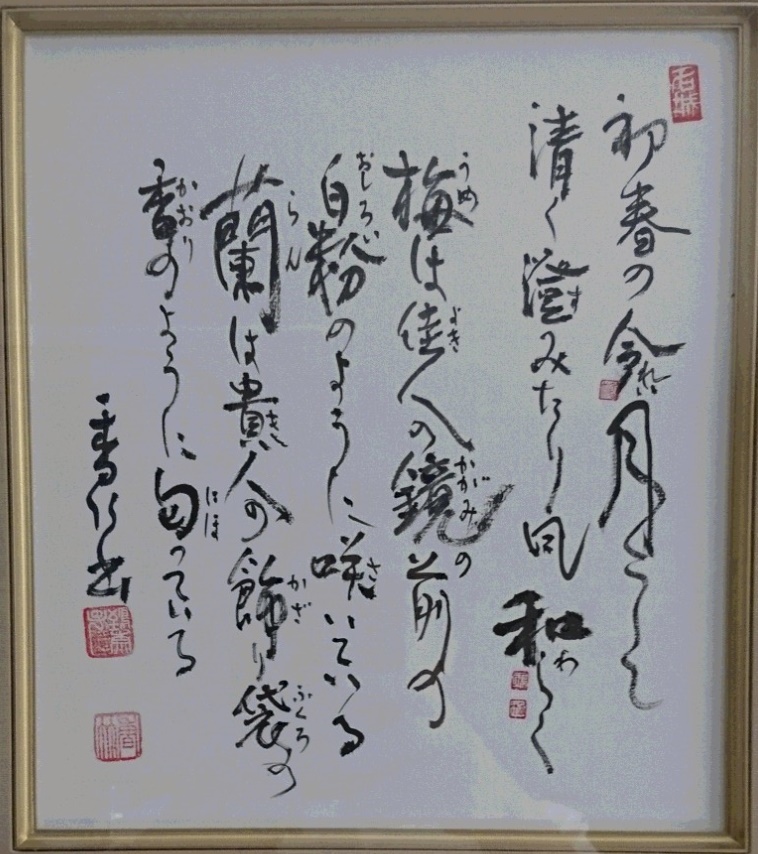 その香竹先生が,立派な額縁のついた「書」と御著「川のように 風のように」を事務所に贈ってくださった。
