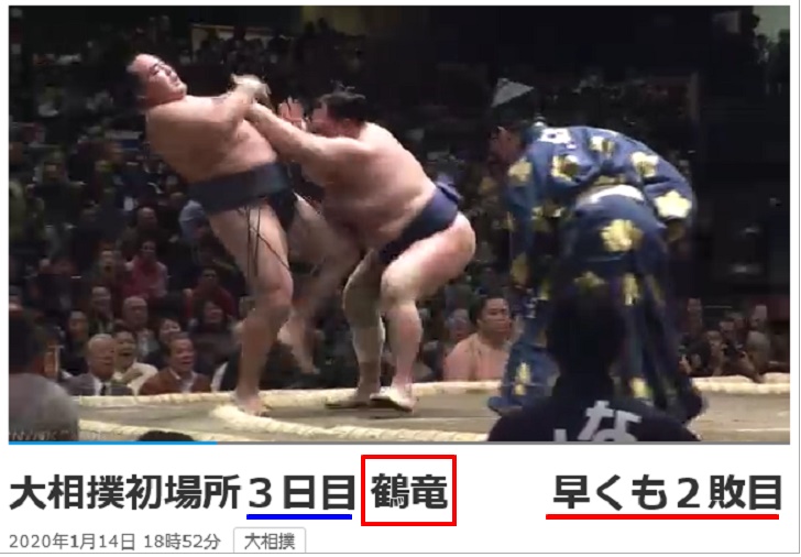 大相撲初場所,3日目にして,鶴竜,早くも二敗目