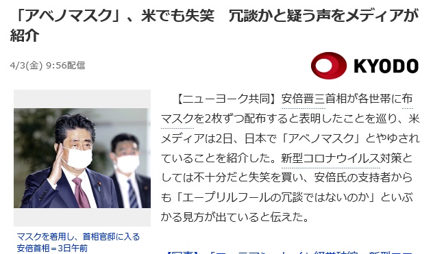 アベ 「いえ,アベノマスクを各住所に2枚ずつ配ります。」